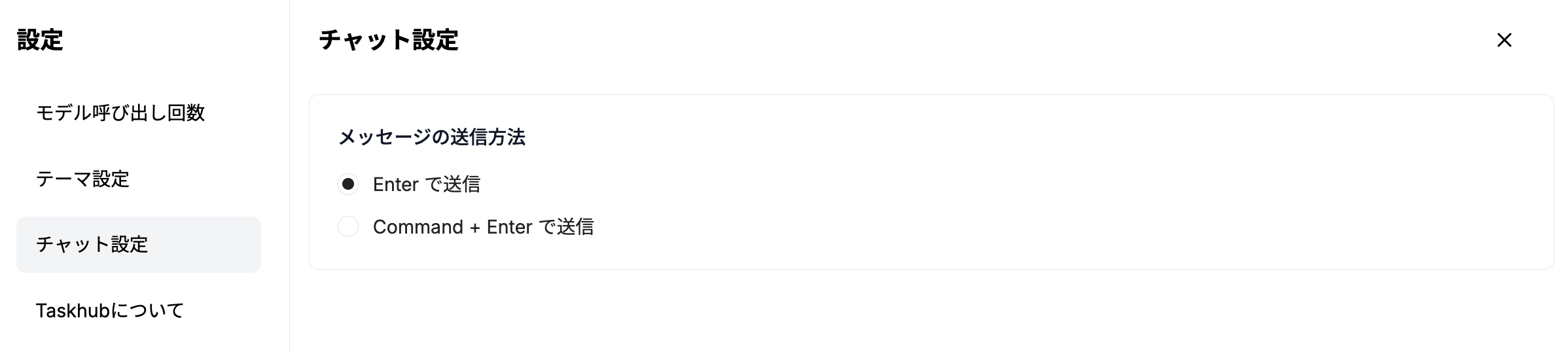 Enterキーを押すだけでメッセージが送信されます。素早いやり取りに適しています。 - Command (Ctrl) + Enterで送信: