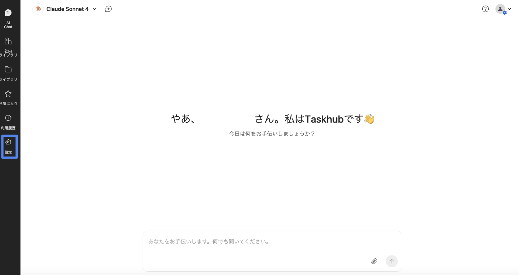Taskhubでは、各ユーザーが自分の利用状況の確認や、インターフェースの使い勝手を自由にカスタマイズできる個人設定機能を提供しています。サイドバーの「設定」をクリックすることで、個人設定画面にアクセスできます。