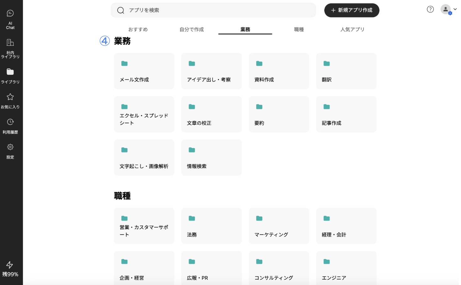 ④業種・職種ごとのアプリフォルダ