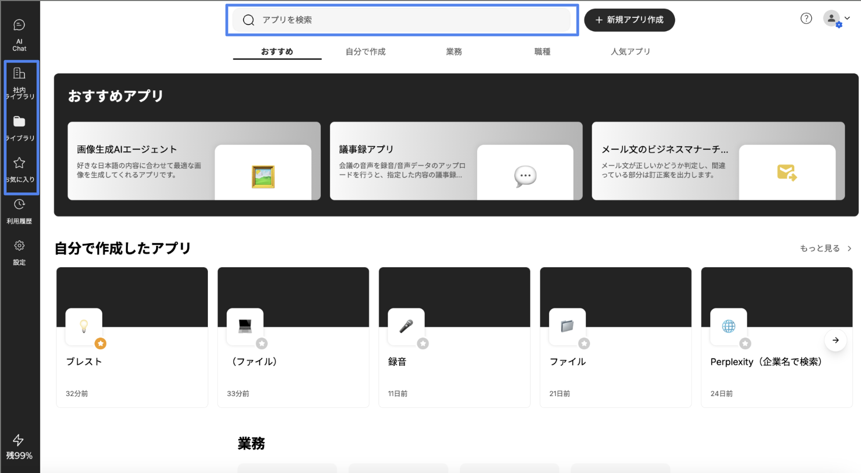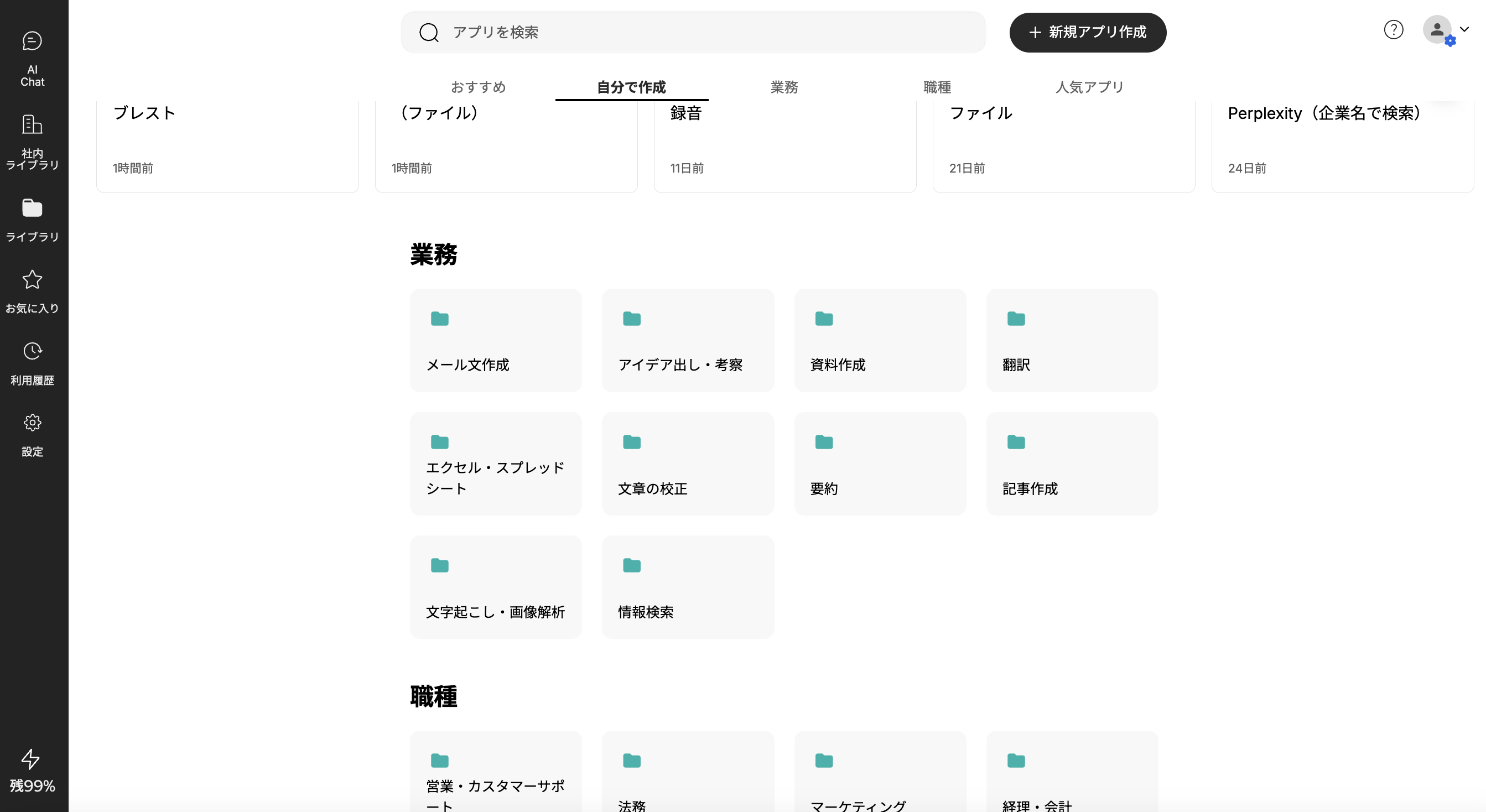 特定の業種や職種に関連するアプリをカテゴリ別に整理したフォルダにアクセスできます。これにより、ユーザーは自分の職務に関連するアプリを効率的に見つけることができます。