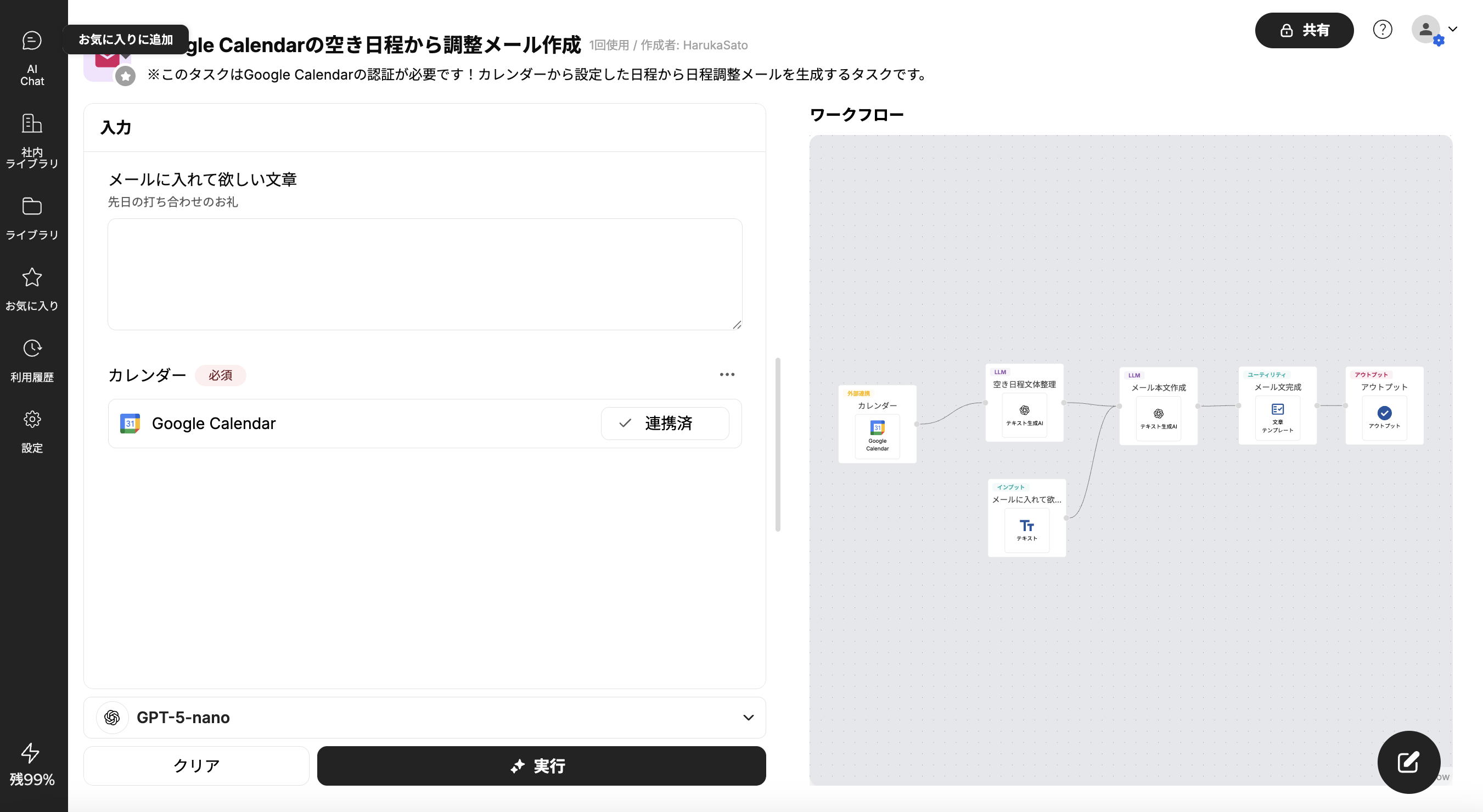 Taskhubには、頻繁に使用するアプリに素早くアクセスするための便利な「お気に入り」機能があります。サイドバーの「お気に入り」セクションをクリックすると、ユーザーがお気に入りに登録したアプリの一覧を表示することができます。
