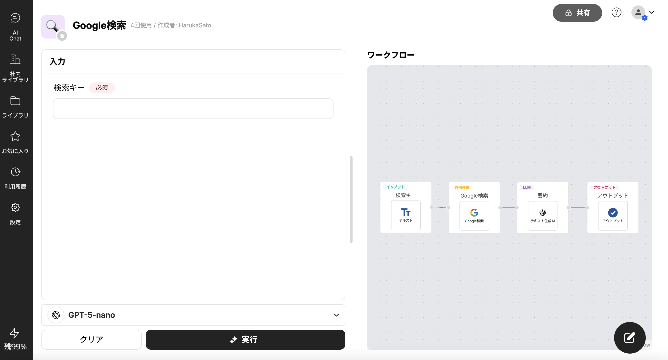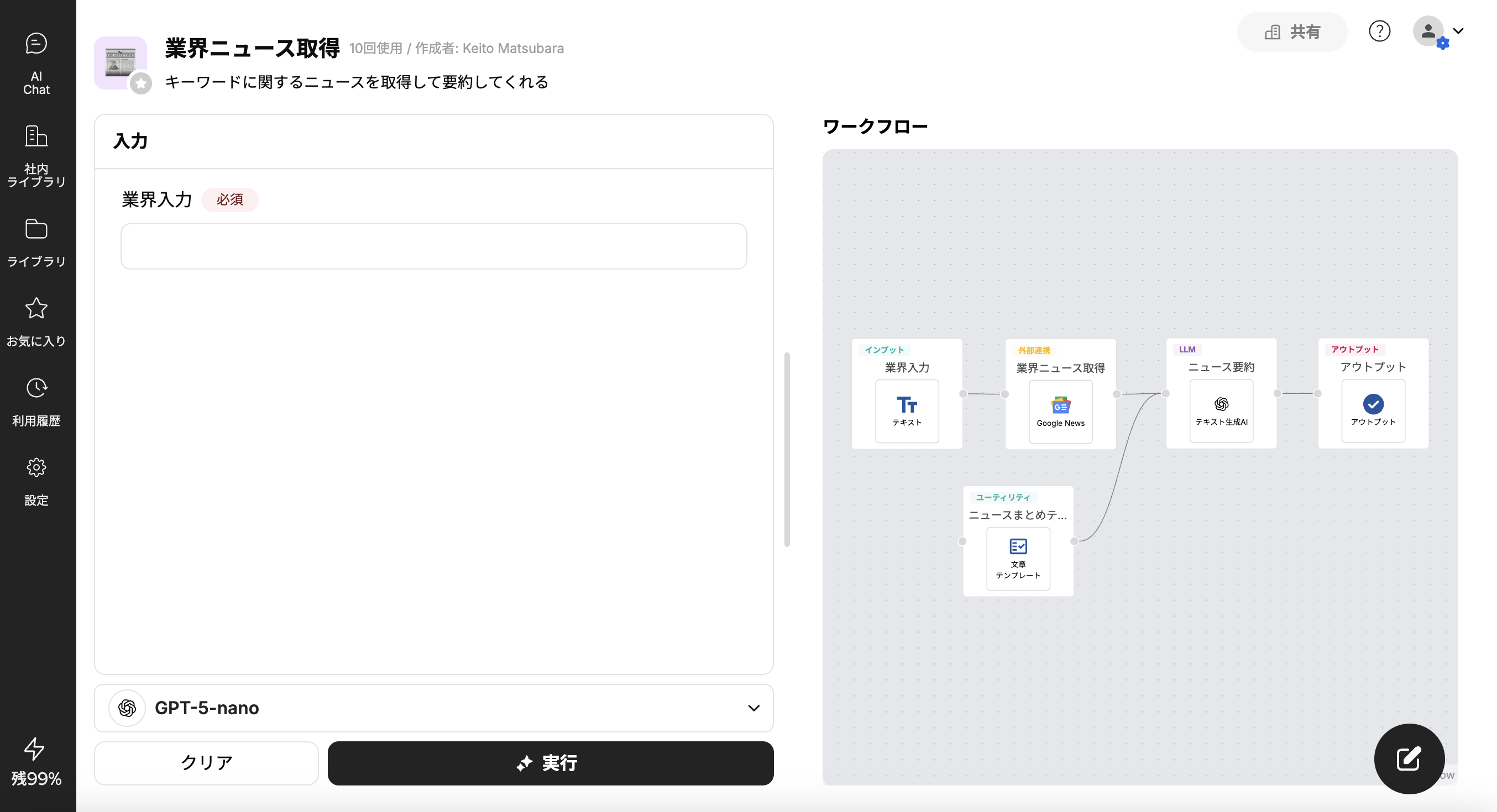 Google Newsとの連携では、入力されたテキストに基づいて最新のニュースを検索し、最大9件取得することができます。