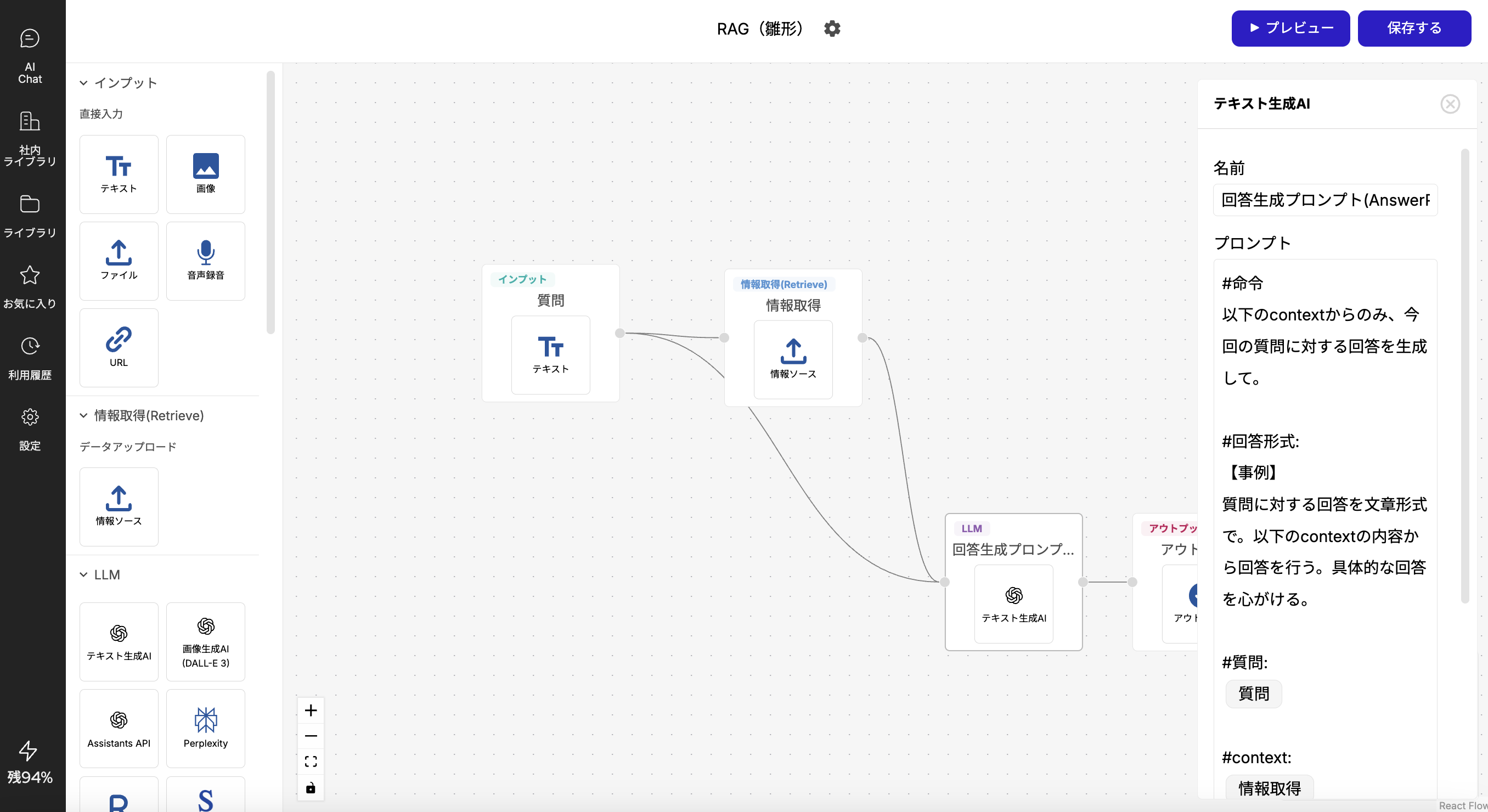 情報取得ノードは、ユーザーからの質問(プロンプト)を手がかりに、ファイル内から関連情報を探し出します。質問が曖昧だと、情報取得ノードもどの情報を参照すれば良いか迷ってしまい、期待通りの回答が得られないことがあります。