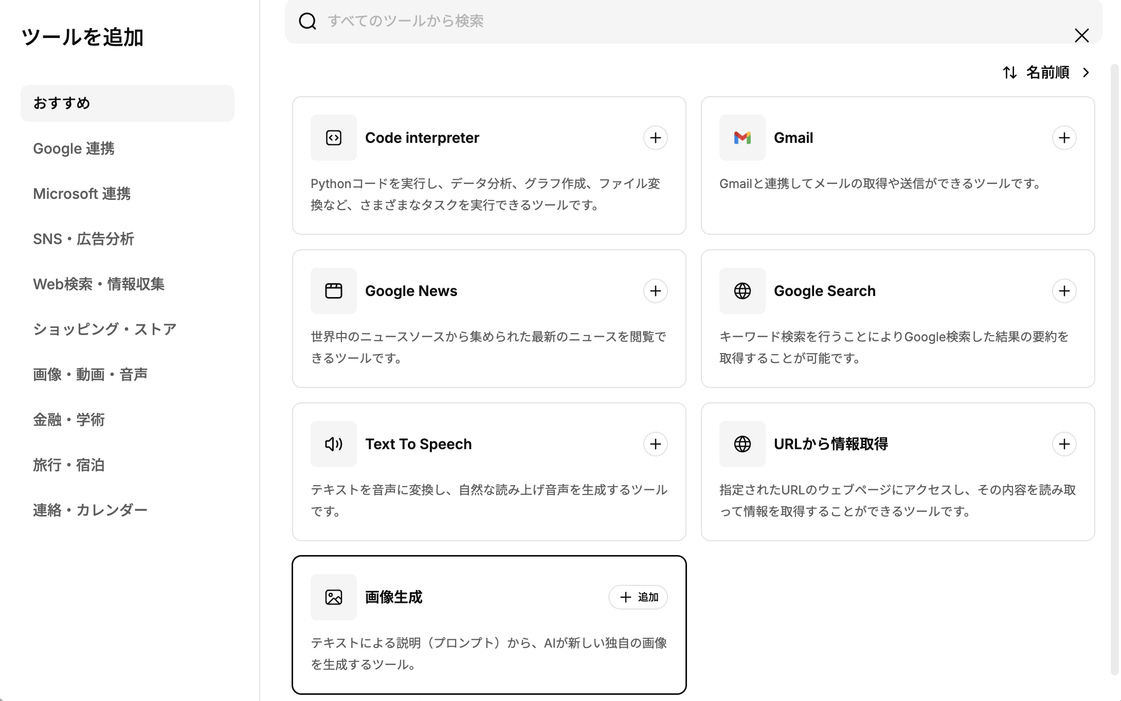 エージェントアプリの作成画面・編集画面では、ツール追加をすることができます。