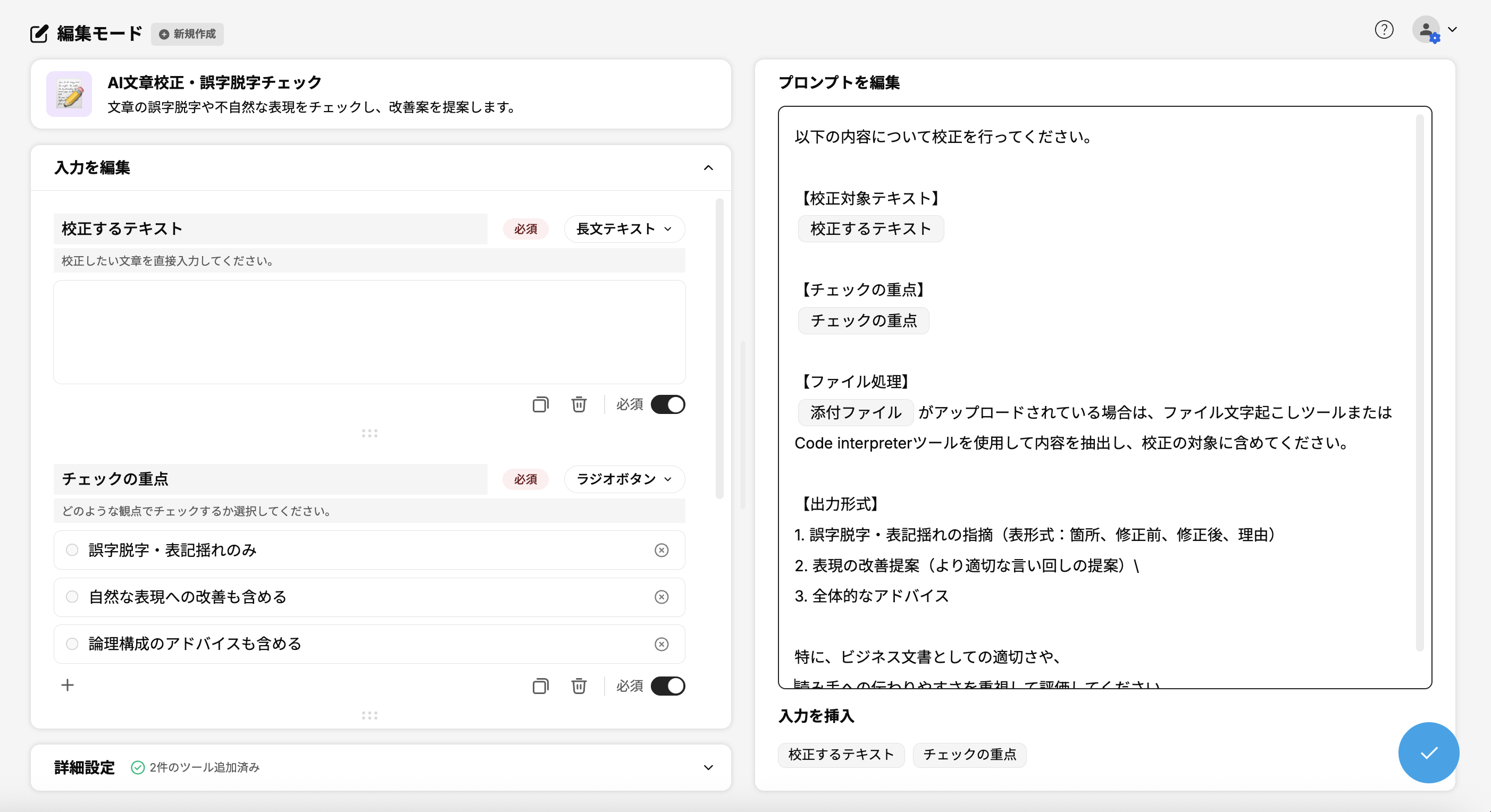 アプリタイトル・プロンプト・変数の項目などを、AIが自動作成します。
