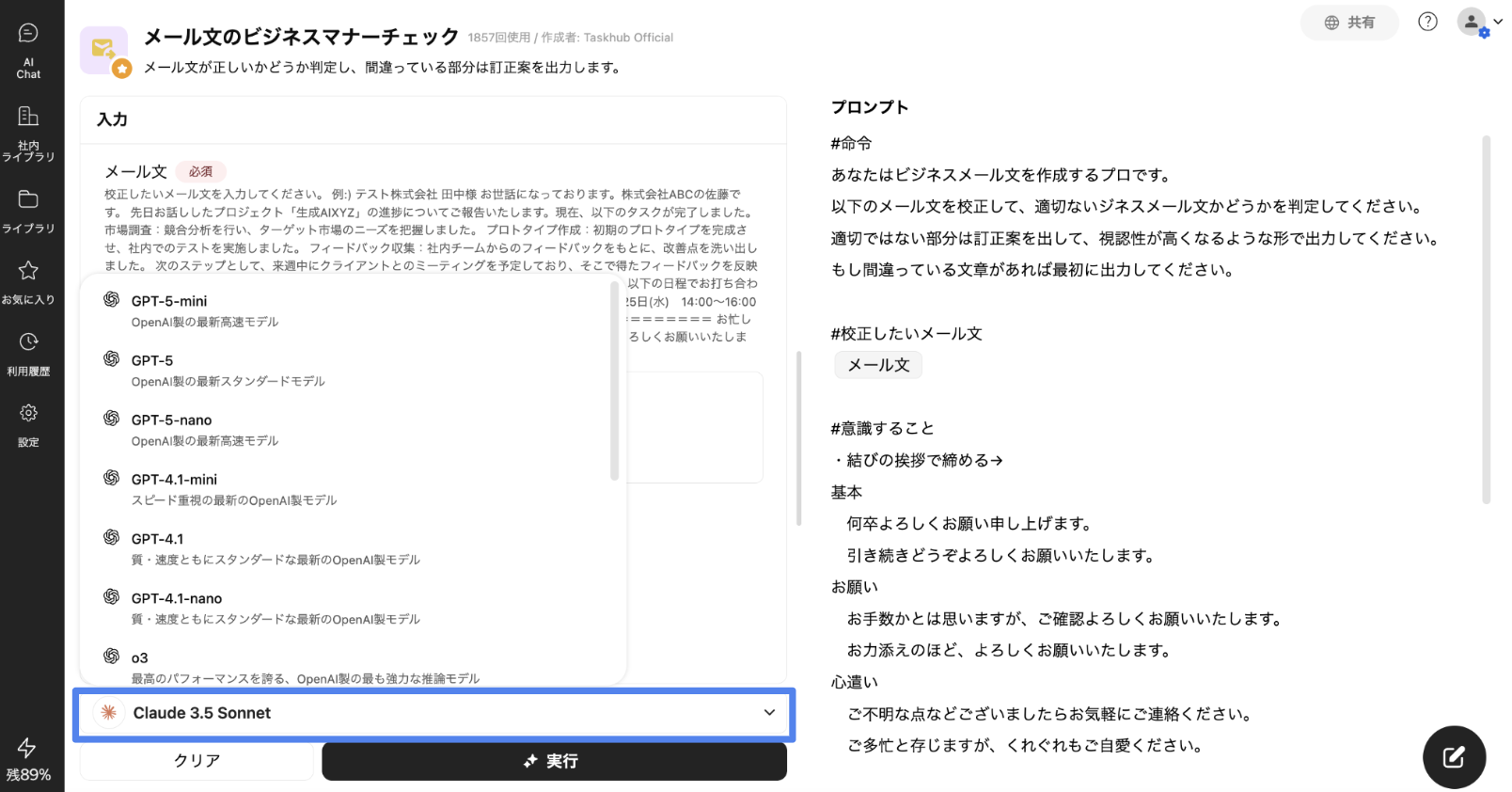 Taskhubでは、プロンプトアプリとワークフローアプリの2種類のアプリを利用できます。それぞれ使用方法が少々異なりますが、基本的な流れは共通しています。以下の手順に従って、アプリを効果的に活用しましょう。