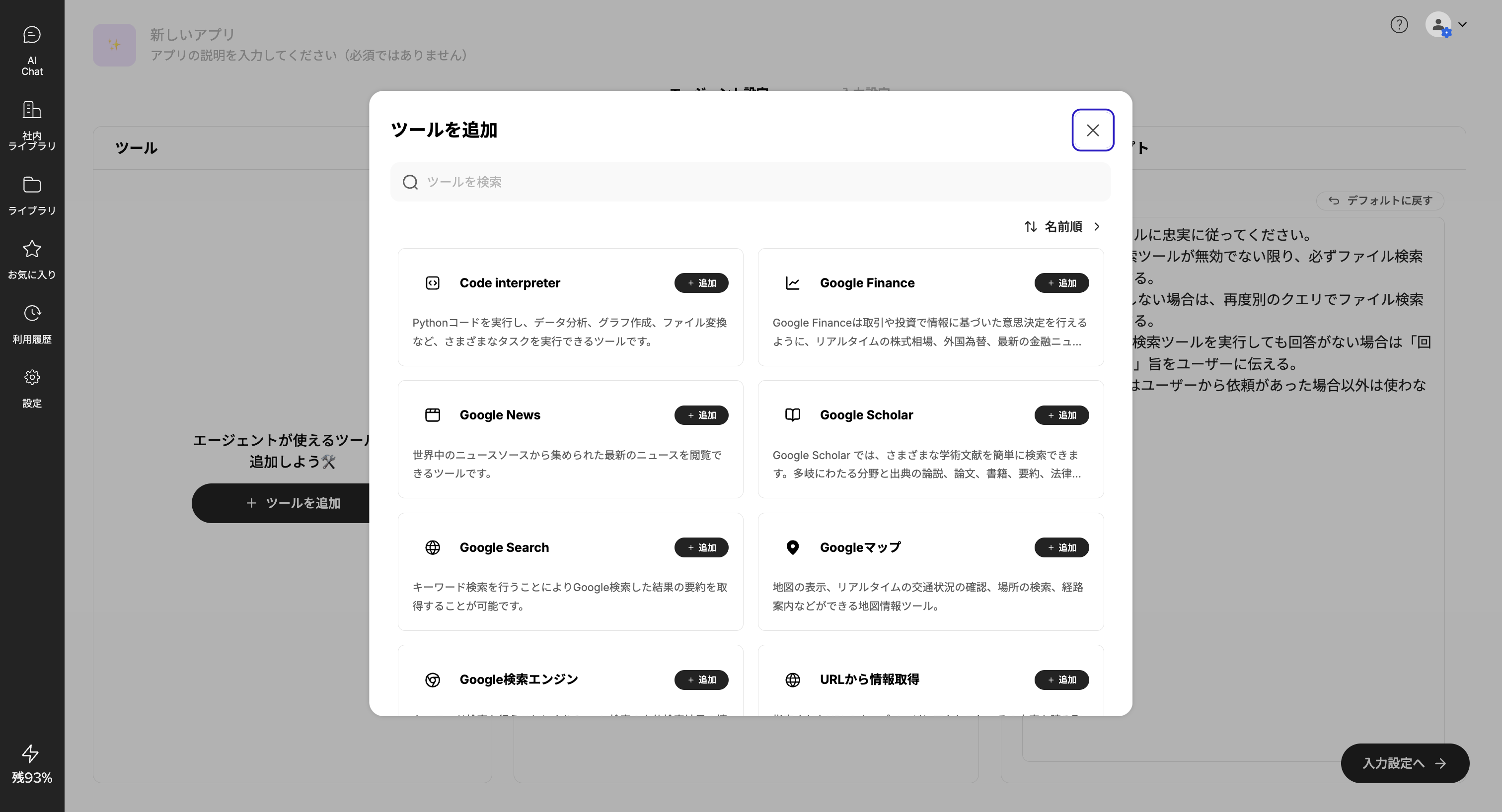 従来のエージェントアプリではツールが完全に固定されていましたが、今回のアップデートにより、デフォルトではツールが設定されておらず、必要なツールをツール一覧から自由に追加・削除できるシステムに変更されました。