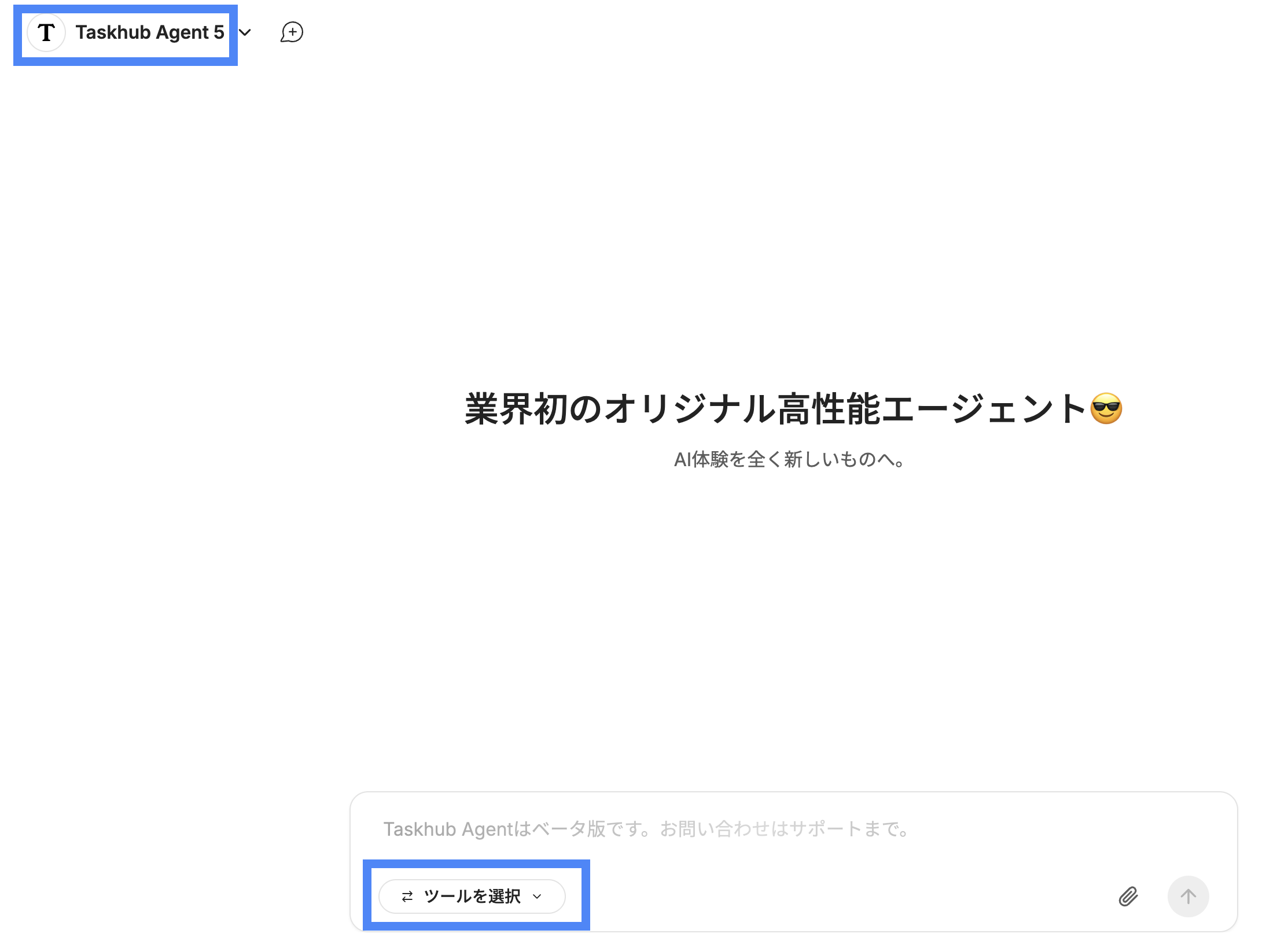 AI Chat画面で「Taskhub Agent」を選択した際、従来はあらかじめ指定されたツールが自動的に適用されていましたが、今回のリリースにより、エージェントが使用するツールを任意に選択・追加できるようになりました。