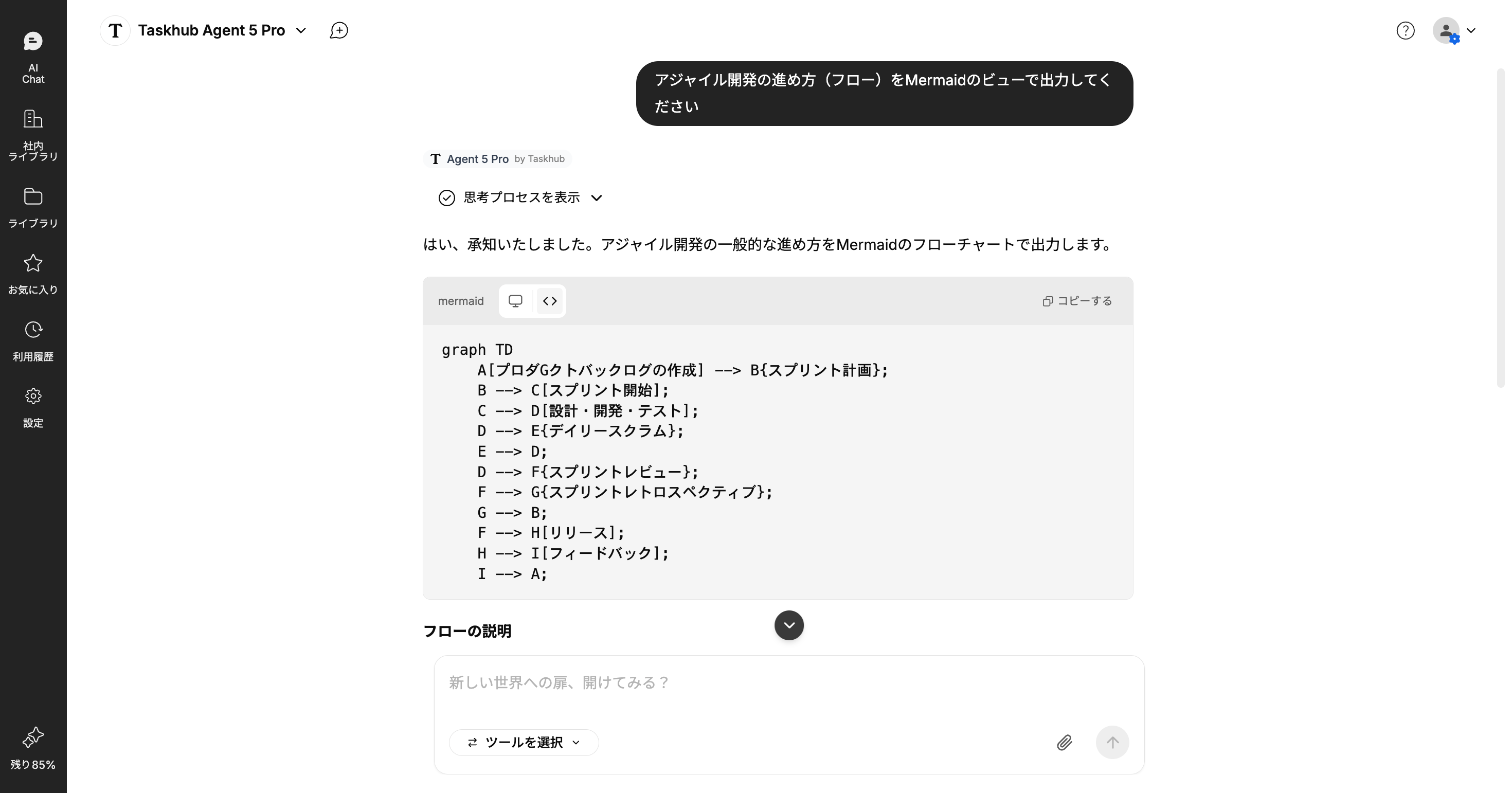 ホーム › リリースノート › AIからの回答でMermaid図を出力できるようになりました