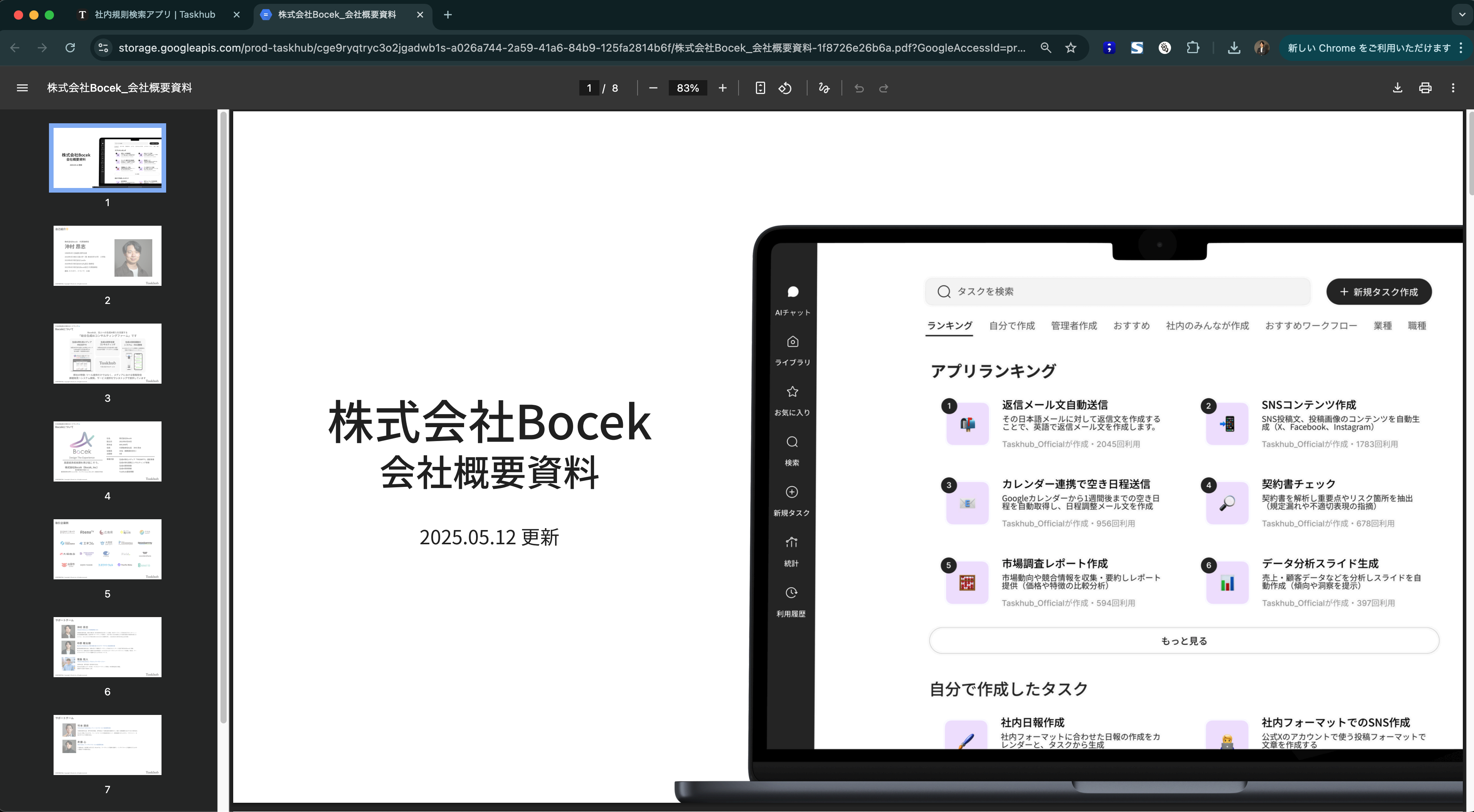 (自社の他ユーザーが作成したアプリまたはTaskhub公式アプリが該当します。)
