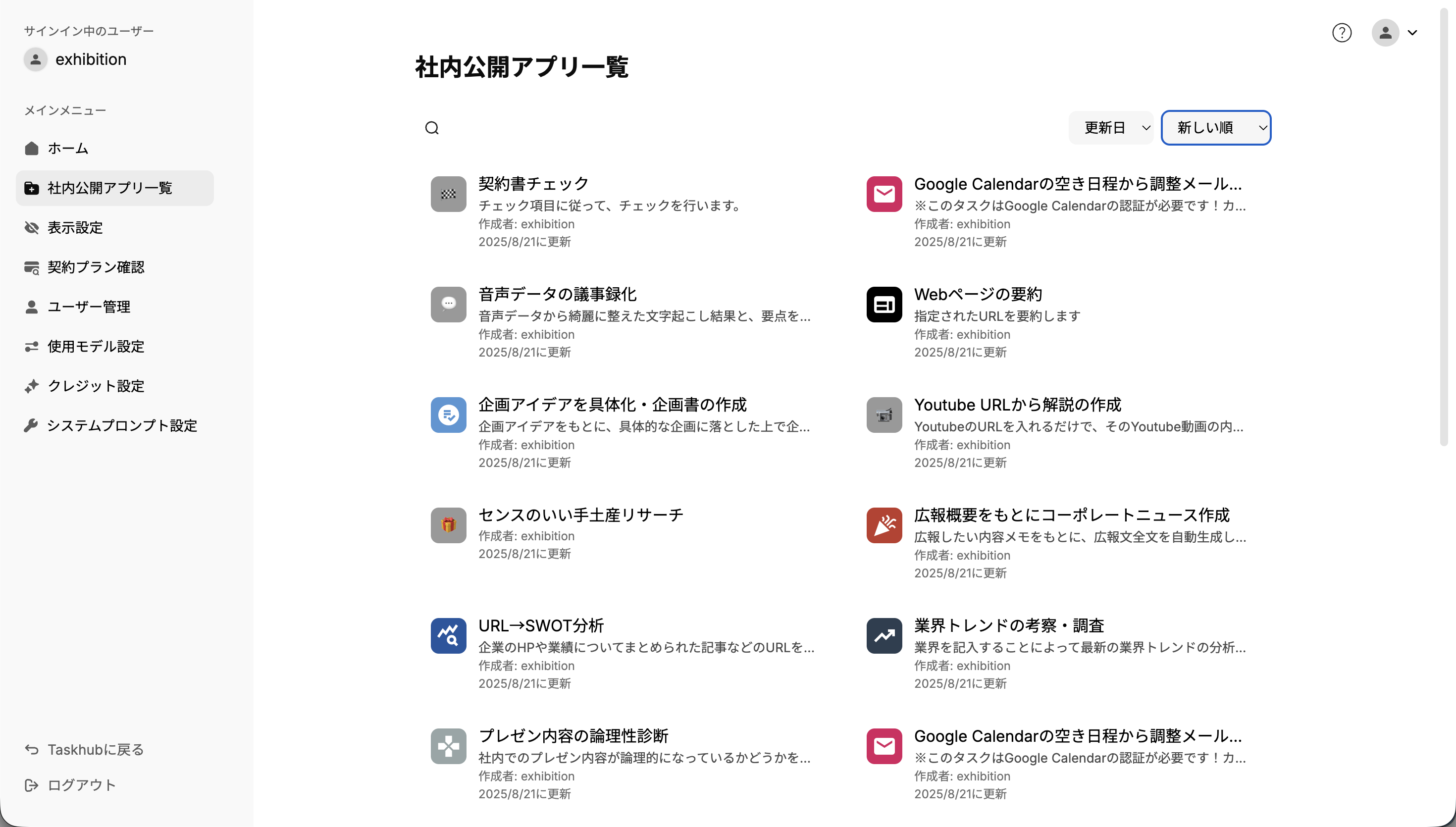 ホーム › 管理者向け機能 › 【アプリ管理】社内公開アプリ一覧