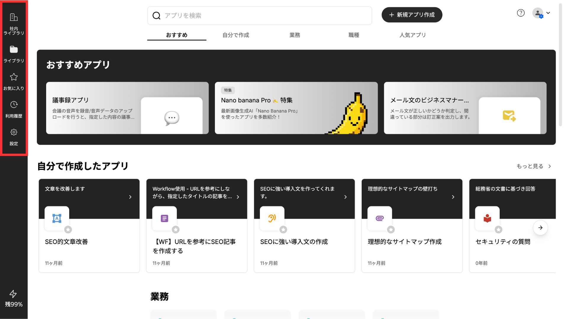 管理者は組織内のユーザーに表示される、サイドバーの項目の設定・編集をすることができます。