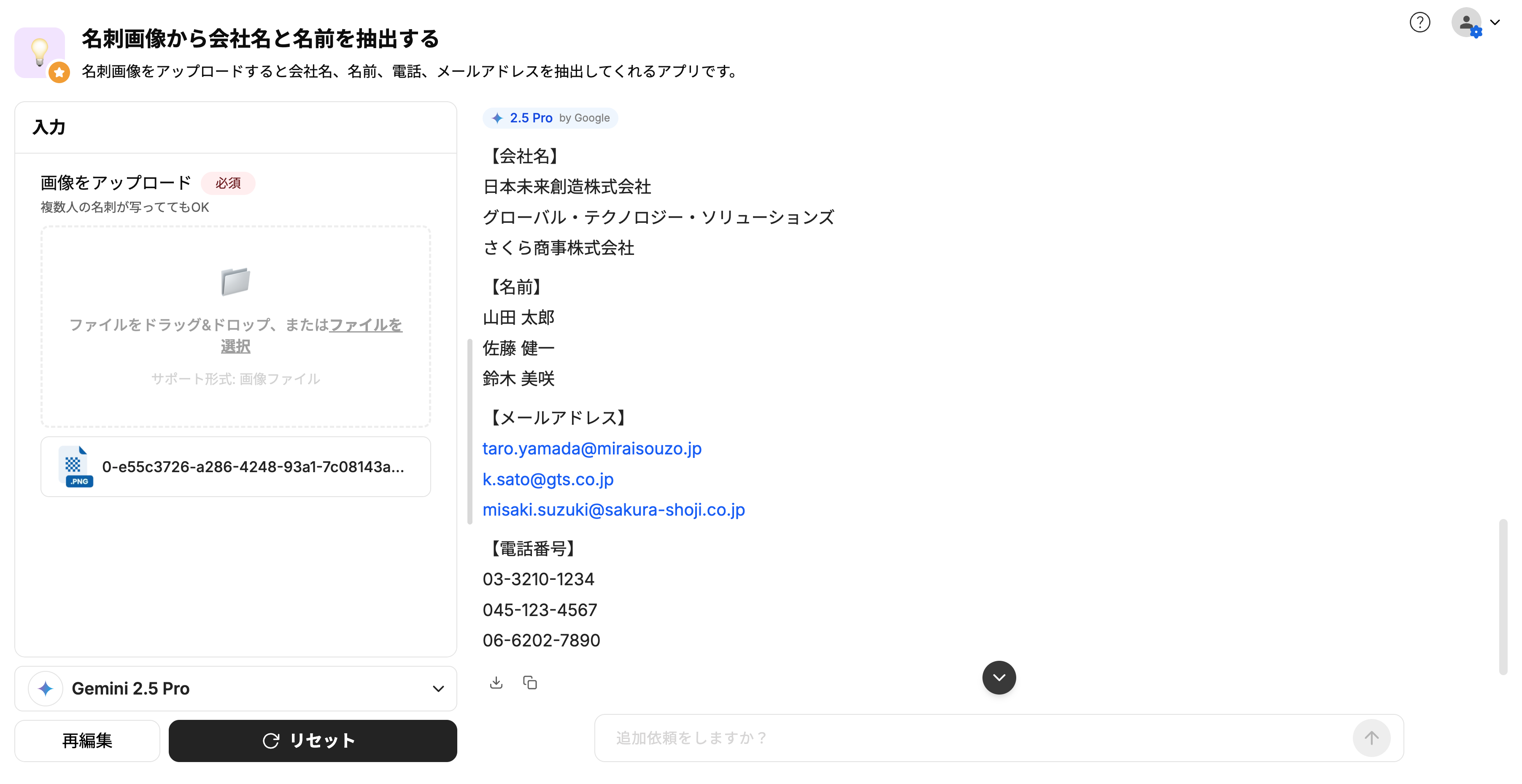 ✨ 名刺100枚の登録がわずか数分に: これまで数時間かかっていたデータ入力作業が、AIの一括処理で劇的に短縮。すぐに顧客リストとして活用できます。