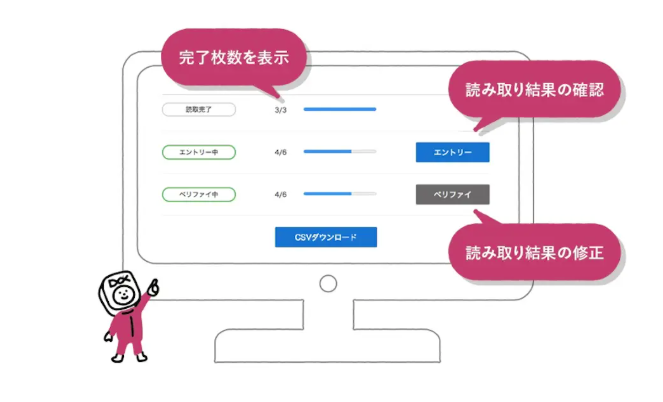 データ入力業務に特化した修正画面インターフェースを持っており、オペレーターが効率よく確認作業を行える工夫が随所に施されています。紙のデータ化業務を専門に行う事務センターなどでも採用されており、処理スピードと正確性を重視する現場に適しています。