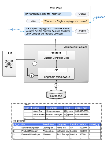 単なる会話プログラムとデータ保管庫をAPIやSQLといった技術で橋渡しすることで、高度な対話が実現しています。