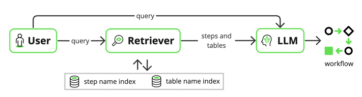 このパターンでは、チャットボットがユーザーの入力をパラメータ(検索条件)として受け取り、外部のシステムやリレーショナルデータベース(RDB)に対して直接問い合わせを行います。