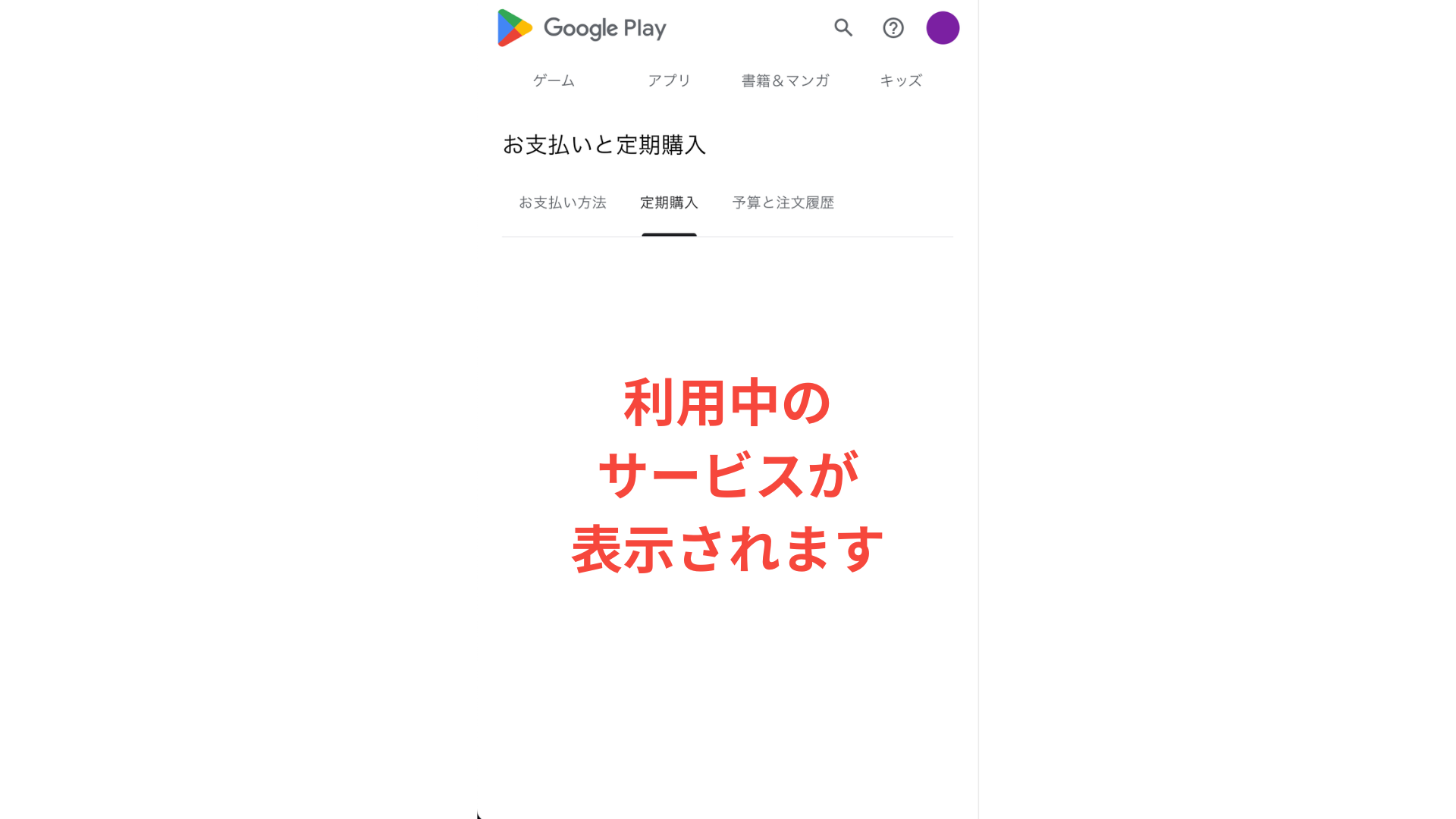 ステップ1:右上のプロフィールアイコンから、「お支払いと定期購入」をタップ