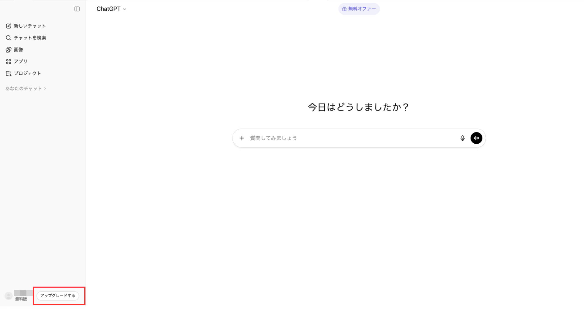 ステップ1:ChatGPTにログインし、「アップグレードする」をクリック