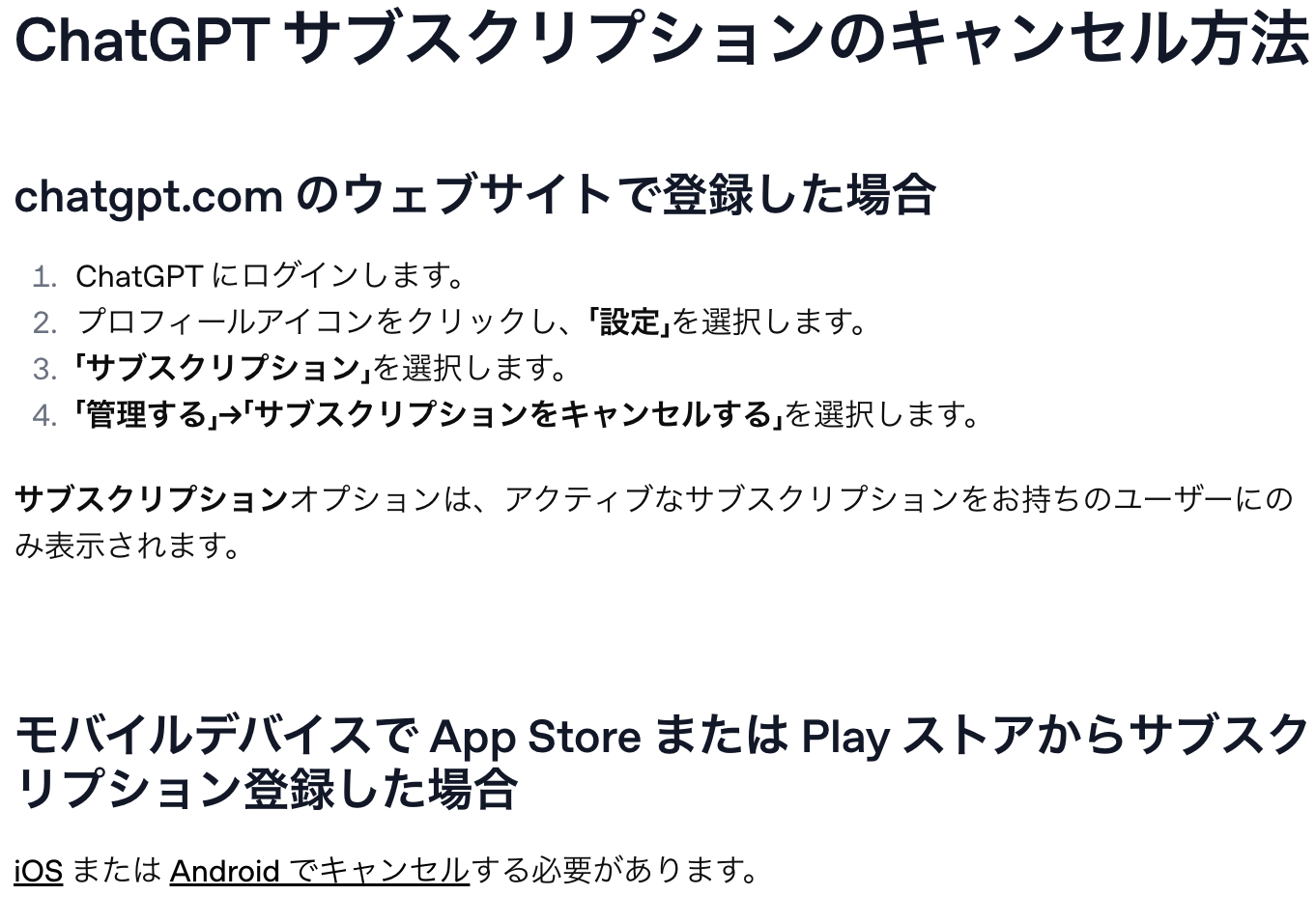 https://help.openai.com/ja-jp/articles/7232927-how-do-i-cancel-my-chatgpt-subscription