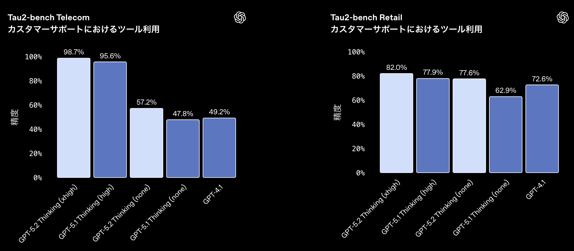 論理的思考を必要とするプログラミングコードの生成や、長文の要約、複雑な文脈理解を求めるタスクにおいて、GPT-5.2との性能差は顕著に現れます。