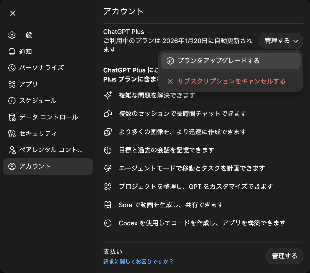 ここでは、ChatGPT Plusを解約し、利用期間が終了した後にどのような制限がかかるのかを解説します。