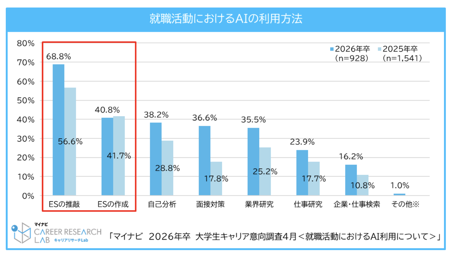 引用元:2026年卒 大学生キャリア意向調査4月<就職活動におけるAI利用> | マイナビキャリアリサーチLab