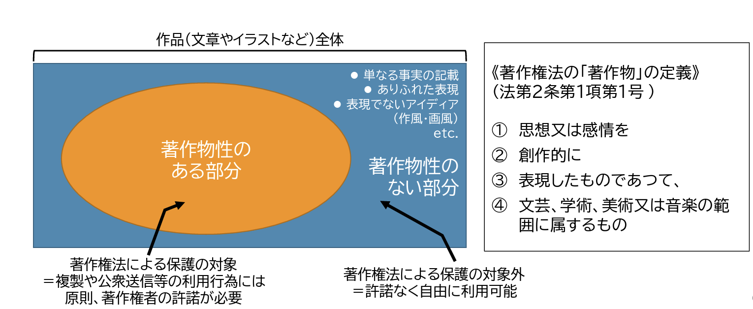 現在の日本の法律(著作権法)では、著作権が発生するためには「思想又は感情を創作的に表現したもの」である必要があります。