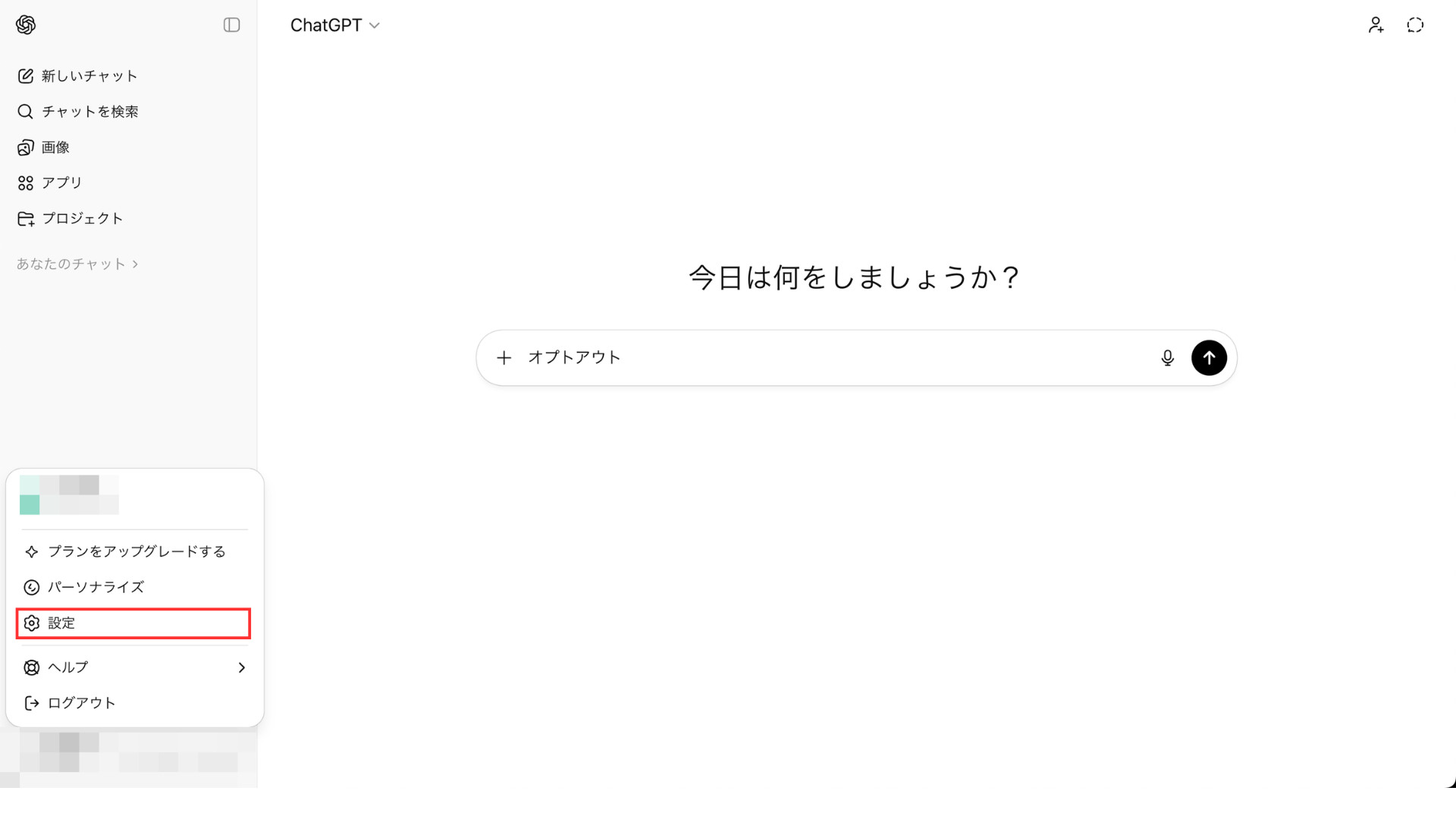 ステップ1:左下のユーザー名をクリックし、「設定」を選択