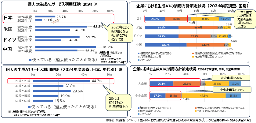 総務省の調査によると、日本でも生成AIの個人利用が広がっています。より高度な活用を目指すなら有料プランは有力な選択肢です。