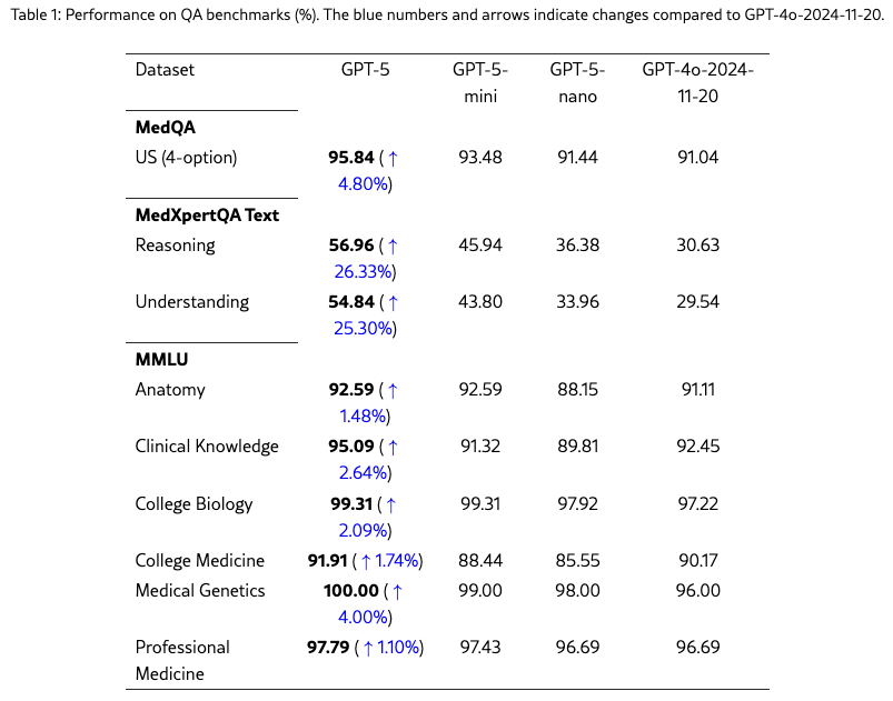 こちらはGPT-5とGPT-4oの性能を医療分野の推論で比較したベンチマーク研究です。専門的な性能差にご興味がある方は引用元をご覧ください。