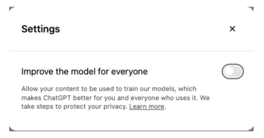 前述の通り、ChatGPTには会話履歴をAIの学習からオプトアウトする機能があります。