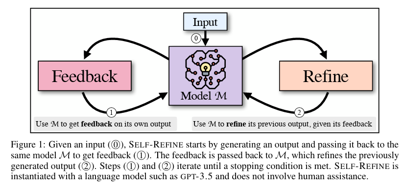 こちらは、AIが外部からのフィードバックを基に、反復的に自身の生成物を改善していく「Self-Refine」というフレームワークを提案した論文です。合わせてご覧ください。 https://openreview.net/pdf?id=S37hOerQLB