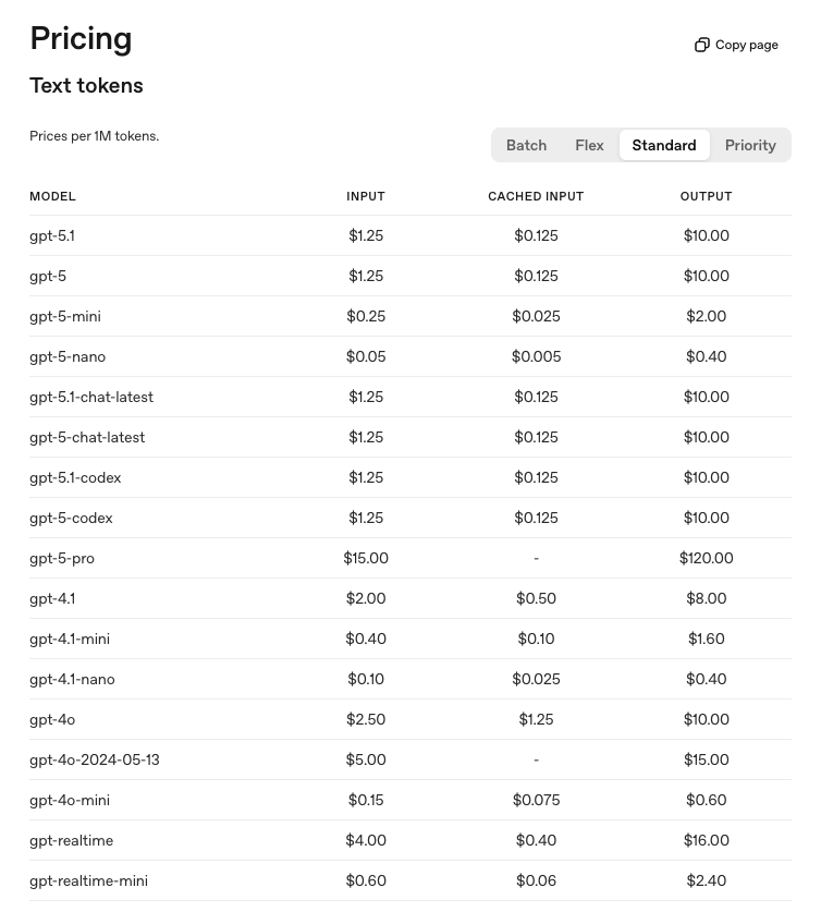 こちらはOpenAIのAPIモデルの最新価格設定ページです。 合わせてご覧ください。 https://platform.openai.com/docs/pricing