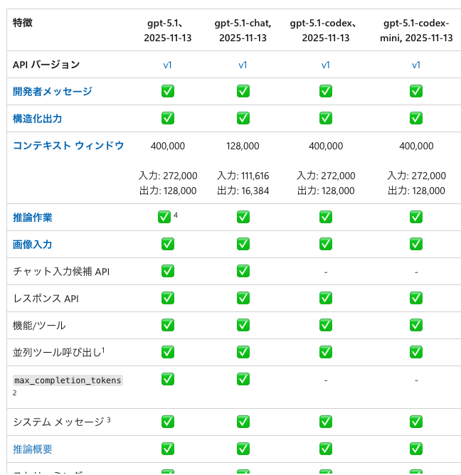これらを把握することで、GPT-5.1がどのようなモデルなのかを素早く理解できます。