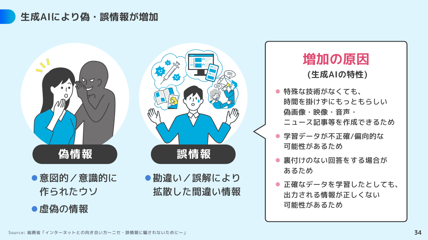 総務省からも、国民が生成AIを賢く安全に利用するためのポイントが示されています。AIを使いこなすための基礎知識として、合わせてご覧ください。 https://www.soumu.go.jp/use_the_internet_wisely/special/generativeai/data/file01.pdf