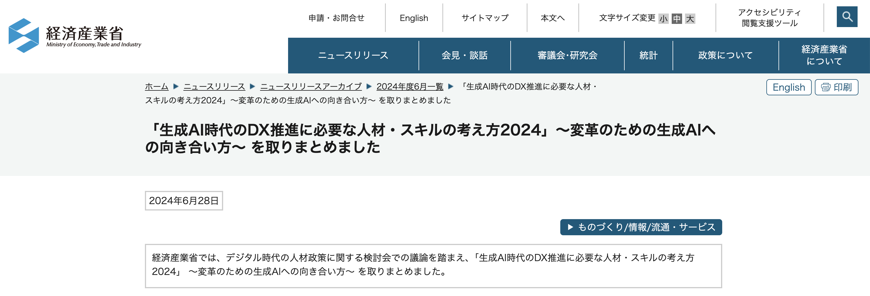 こちらは経済産業省が発表した、生成AI時代のDX推進に必要な人材・スキルに関する資料です。合わせてご覧ください。 https://www.meti.go.jp/press/2024/06/20240628006/20240628006.html