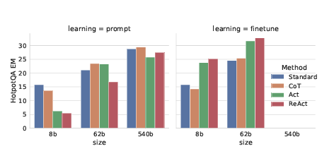 「思考(Thought)」と「行動(Action)」を交互に行わせることで推論精度を高める「ReAct」手法の提唱論文です。 合わせてご覧ください。 https://arxiv.org/abs/2210.03629