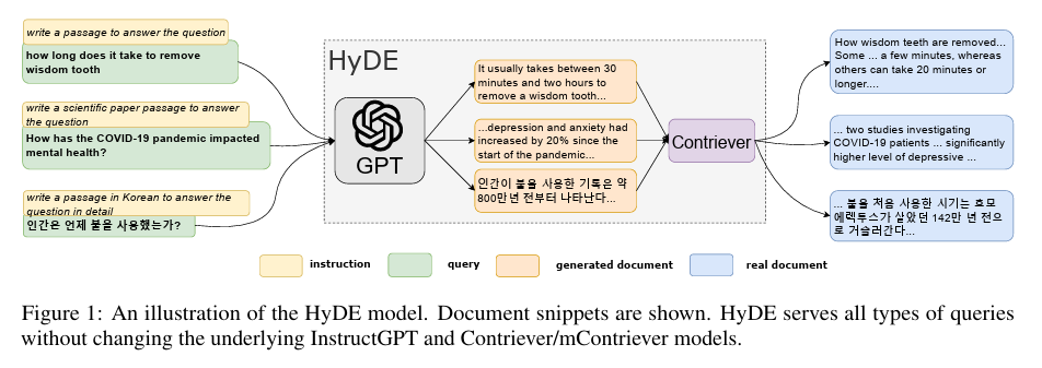 こちらはHyDE(Hypothetical Document Embeddings)の手法について詳述された論文です。 合わせてご覧ください。 https://aclanthology.org/2023.acl-long.99/