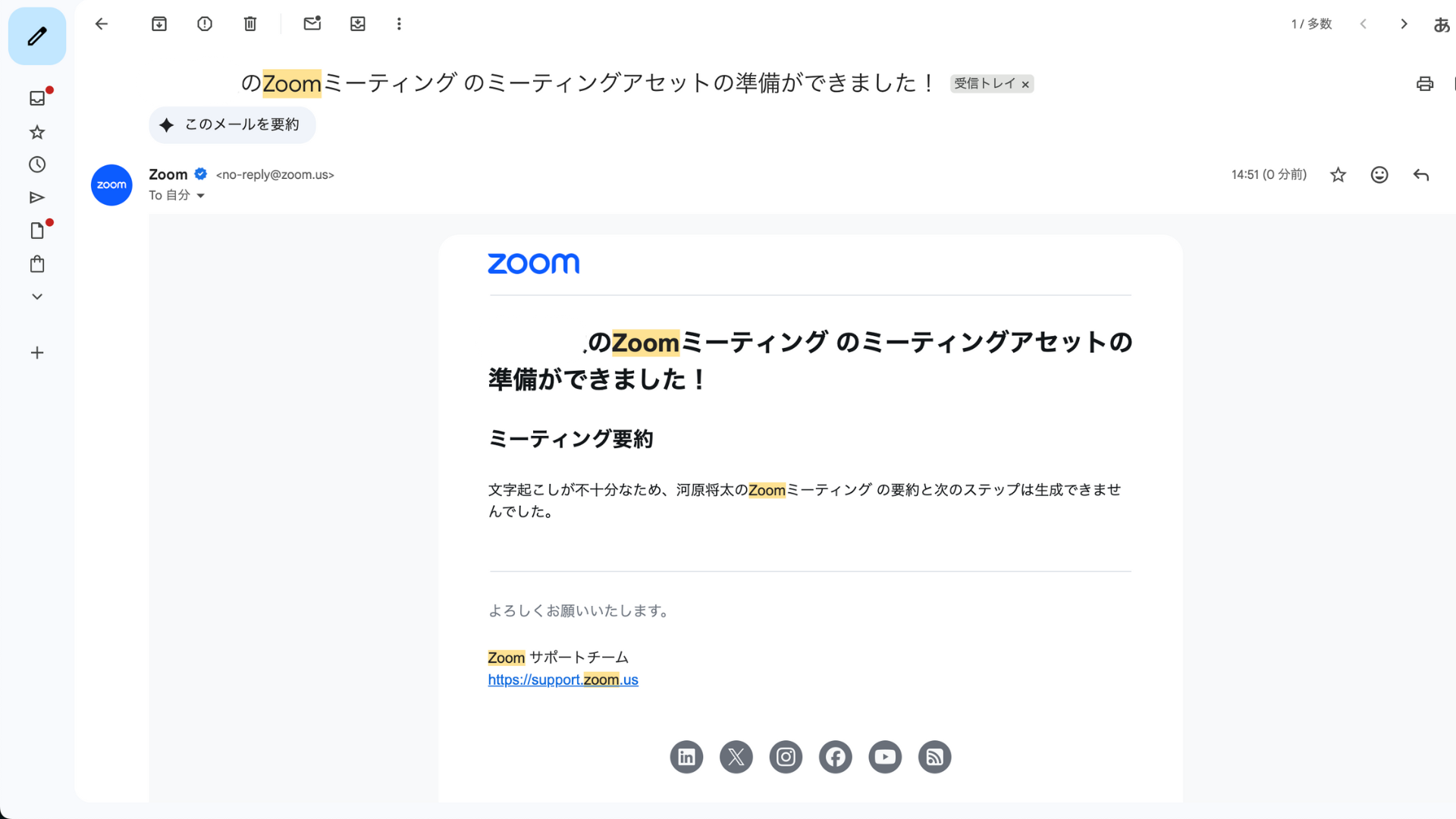 ステップ3:ミーティングの要約がメールアドレスに届きます。