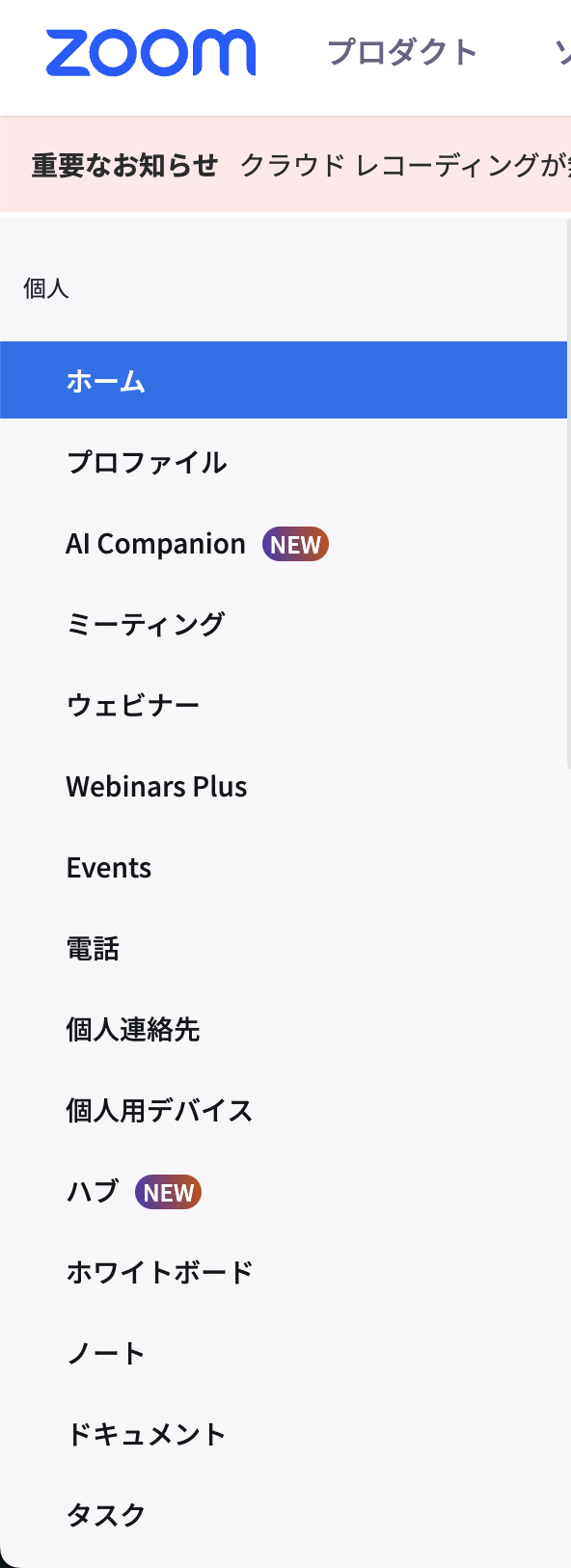 ただし、クラウド記録やフルトランスクリプト機能、AI Companionといった高度な機能は有料ライセンス限定となります。