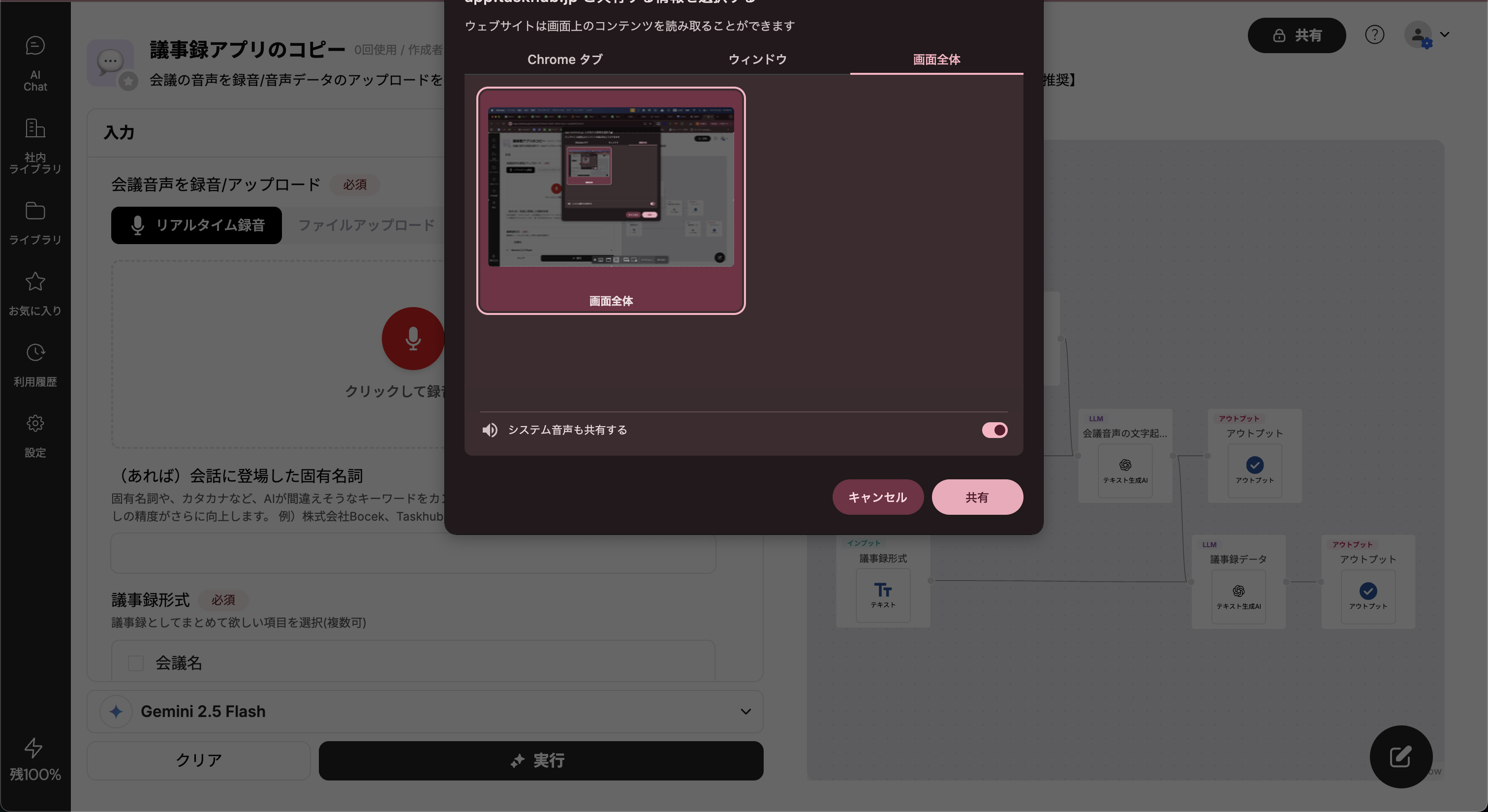 しかし、「既存のツールでは決まったフォーマットでしか出力できず、結局手直しが必要」「対面の会議には対応しておらず、使い分けが面倒」といった課題を感じている方も多いのではないでしょうか。